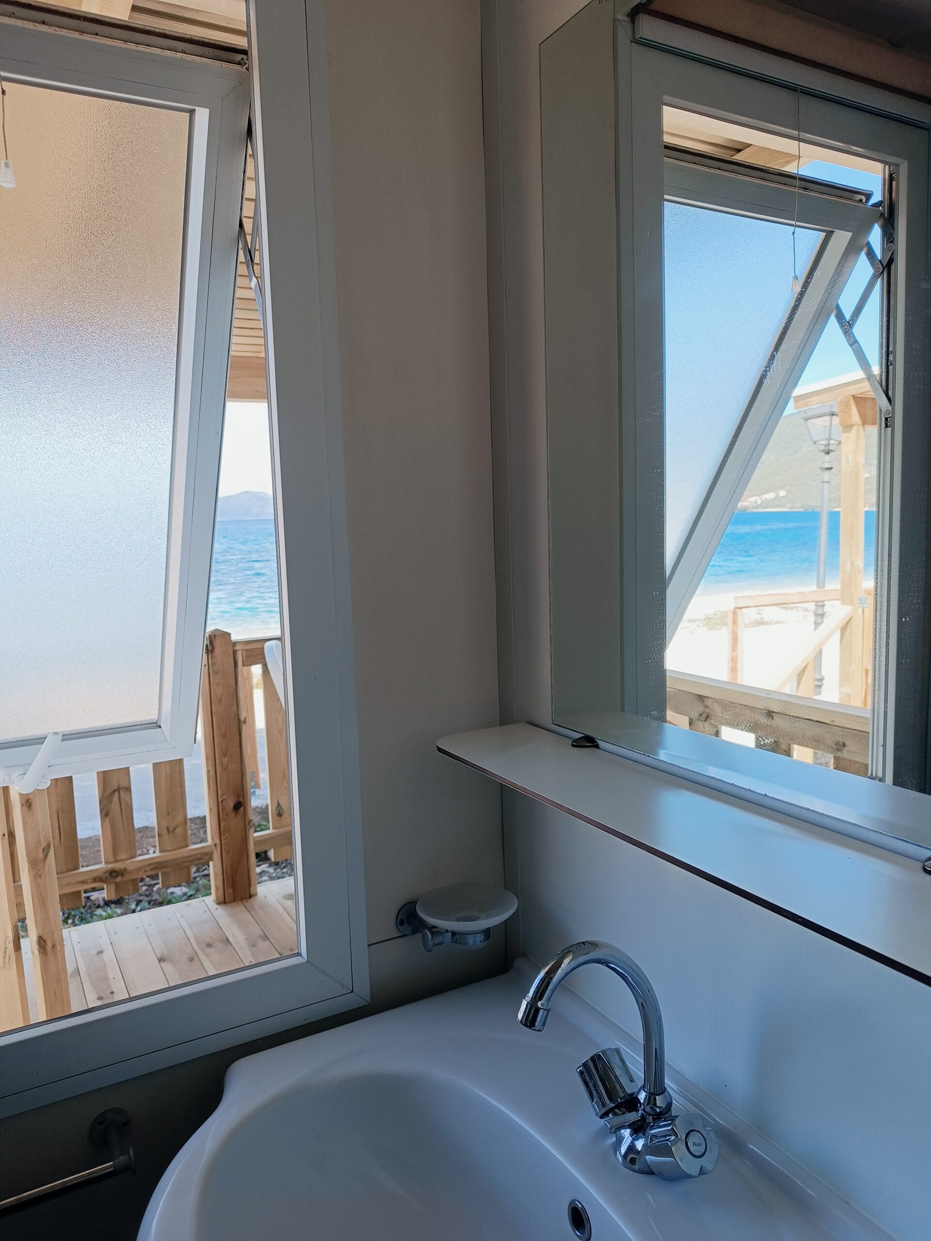 Επιπλέον, υπάρχει μπάνιο με ντουζιέρα και νιπτήρα, καθώς και ξεχωριστό δωμάτιο με τουαλέτα και νιπτήρα.