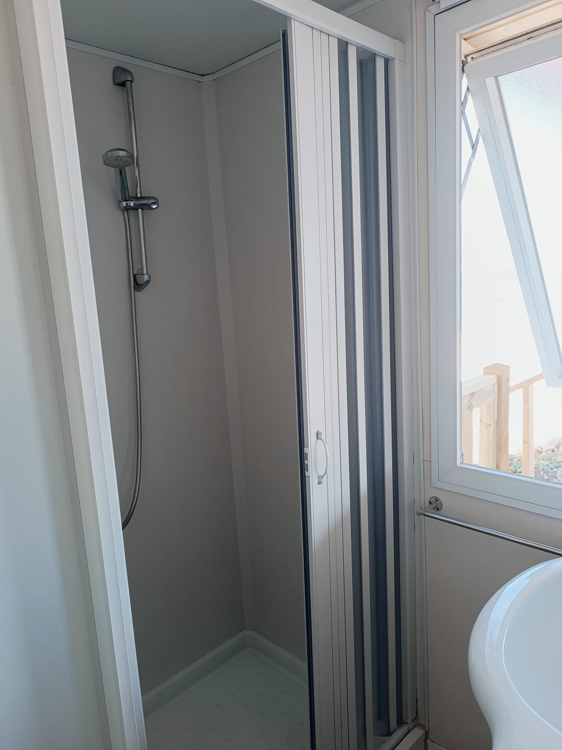 Υπάρχει επίσης μπάνιο με ντους, νιπτήρα και τουαλέτα.
