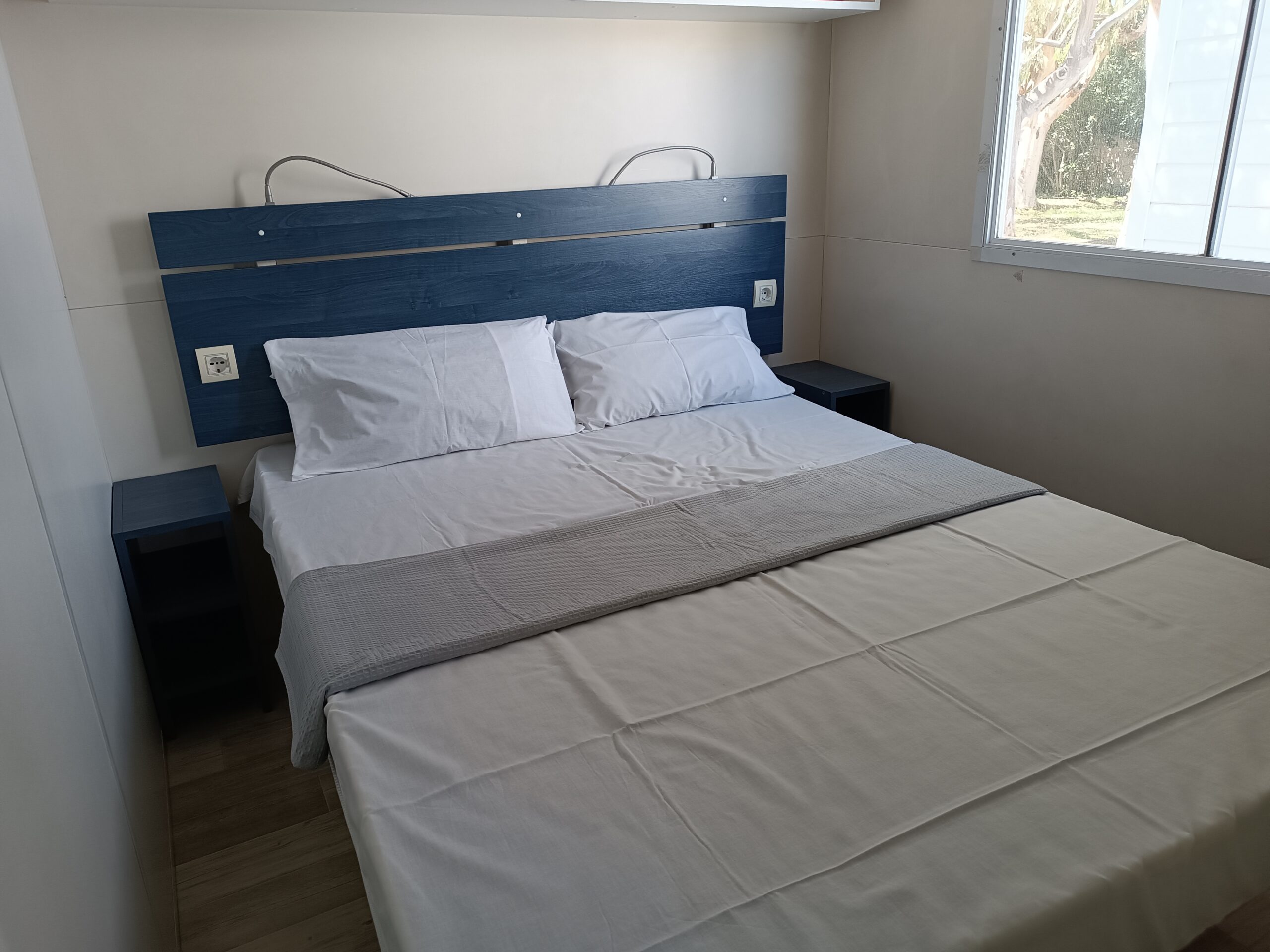 Ένα υπνοδωμάτιο με δύο μονά κρεβάτια (70×190 cm) και ένα κρεβάτι-κουκέτα για άτομο έως 150 cm ύψος και 60 kg βάρος.
